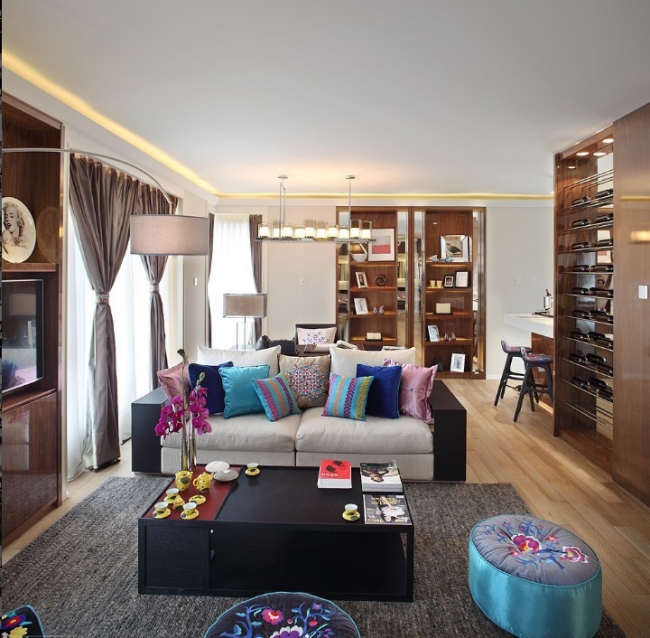 2013-7-2新中式與民族風的混搭風格,令人眼前一亮。硬裝偏向沉穩,線條筆直,色調為米白主色搭配黑咖,新中式的意味濃厚。然而軟裝十分活潑,采用了許多民族風色調的裝飾品,色彩艷麗的家具只需要零星幾個,就能讓整個空間活躍起來。...[繼續閱讀] -