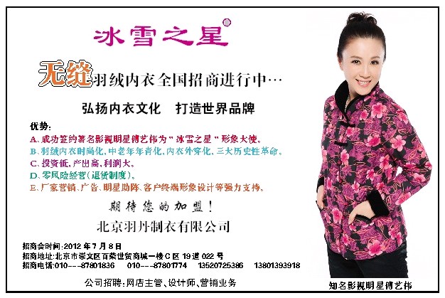 北京羽丹制衣有限公司全國隆重招商中