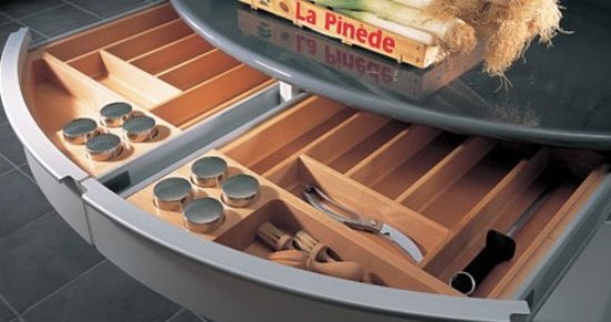 2012-8-27可下拉式的儲(chǔ)物擱架很適合安裝在廚房的吊柜部分,方便取放上層物品廚房面積很大時(shí)更要注重有效收納,島形工作臺(tái)下一定要設(shè)計(jì)成抽屜或柜子。充分利用廚房的上部空間,吊放擱架的收納能力超強(qiáng),而且還不占地。擺放廚房用具的抽屜里最好有設(shè)計(jì)好的隔斷,它既能保護(hù)各類物品不要相互磨損,又能方便拿取。臺(tái)面下可抽拉出的案板和...[繼續(xù)閱讀] -
