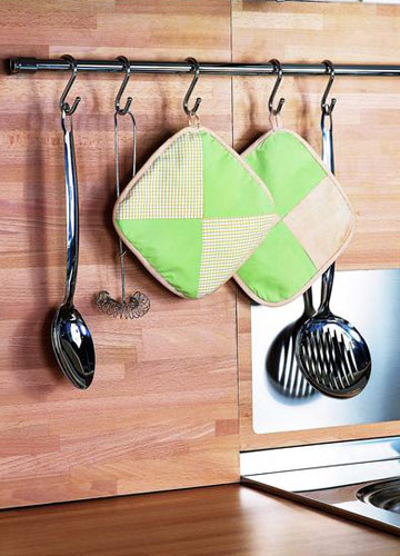2012-4-27想把碗碟放置在廚柜外,卻又擔心凌亂或不小心推翻打碎,不妨選用一些玻璃罩。透明質地讓你方便看到每一種器皿,視覺上的通透性不會讓廚柜臺面顯得擁擠。不浪費每一個空間當然也包括廚房頂部啦,吊放的擱架,既不占地,而且收納能力超強。原木材質的網格架搭配小型粘鉤,根據你的烹飪習慣,安裝在廚柜的一側或是料理臺的墻面...[繼續閱讀] -
