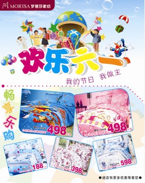 2011-6-1快樂的六一兒童節又到了,這是活潑可愛的少年兒童們的專屬日子,同時也是家長們對家里的王子和公主們展示愛心的絕佳機會哦。為了迎接節日的到來,夢麗莎家紡特別展開了一場以“歡樂六一”為主題的兒童床上用品降價促銷活動,重拳推出多款專為中小學生量身打造的家紡用品,有浪漫可愛的淑女碎花,也有個性酷炫的動感卡通,當...[繼續閱讀] -
