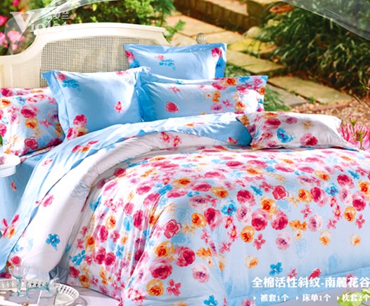 2012-3-12草長鶯飛的季節,拂堤楊柳的搖曳,花絮迷蒙的漫天,給這個晚來的春天增色不少。春天是花兒的樂園,百花齊放...,充分營造浪漫的感覺。家紡十大品牌紫羅蘭春夏新品瑤池花影,鮮艷的花型組合,纖細柔美的花朵相互環繞,讓人不由眼前一亮,感受到濃濃的美好與純真。床品于細節之處打造出家的精致氣質,營造出清新爽潔的臥室氛圍。[繼續閱讀] -
