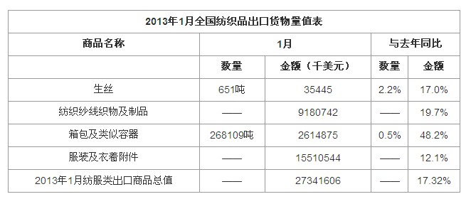 紡織品服裝首月出口增14.7%