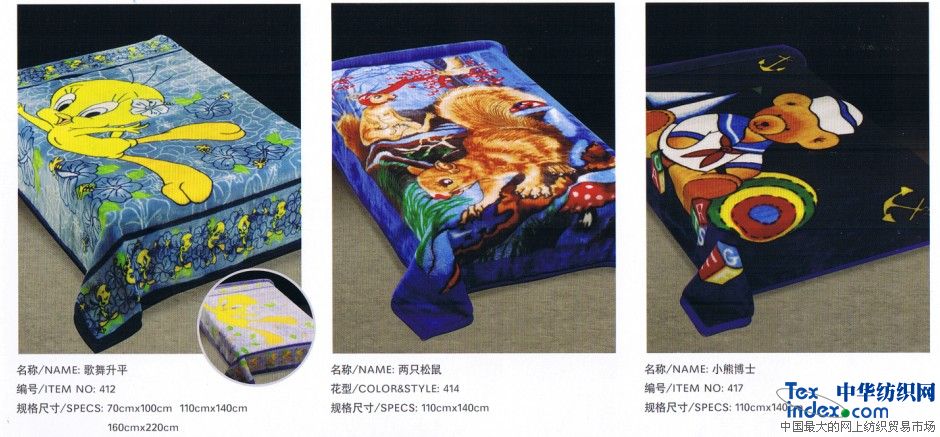 產品性能優點。手感柔軟,覆蓋性好,光學性好,服用性好,質地細膩,不掉毛,不起球,不掉色,吸水性強,是全棉產品的三信,對皮膚無任何刺激,不過敏。超柔軟的瑚絨毯,就像媽媽的手輕輕的撫摩嬰兒肌膚。顏色柔和,圖案多彩,給人溫馨的享受,是幼兒必不可少的呵護 產品用途:兒童使用(家紡毯子,旅行毯等)