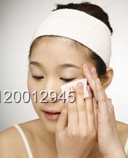 1.以化妝棉沾清潔霜拭去污垢
