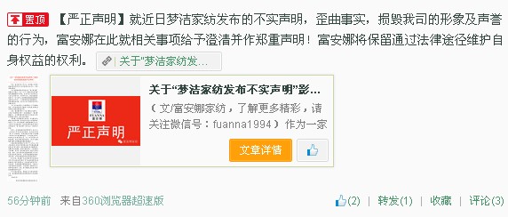 夢(mèng)潔聲明被羅萊、富安娜捏造假新聞詆毀